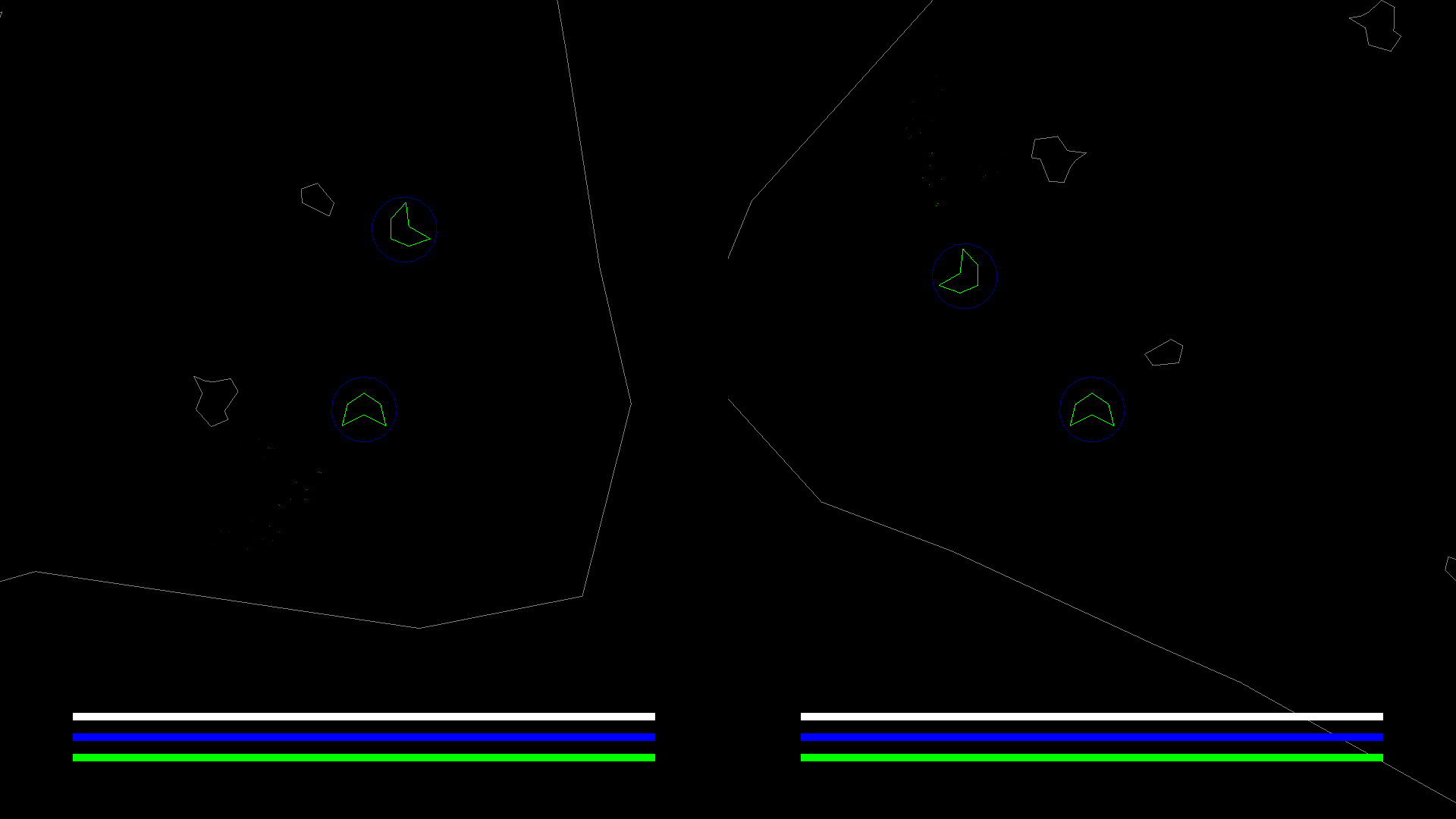 One change that came with a bit of resistance from me, adding actual sprites. I had originally intended it to be a simple little line based Asteroids looking game, but when real graphics from an actual artist entered the game, imagination kicked in. How about some nebula clouds? Oh, wouldn't it be nice if the clouds would affect the viewing distance? This is when the game stopped being a prototype and started becoming an actual game that you would recognize from screenshots of today.